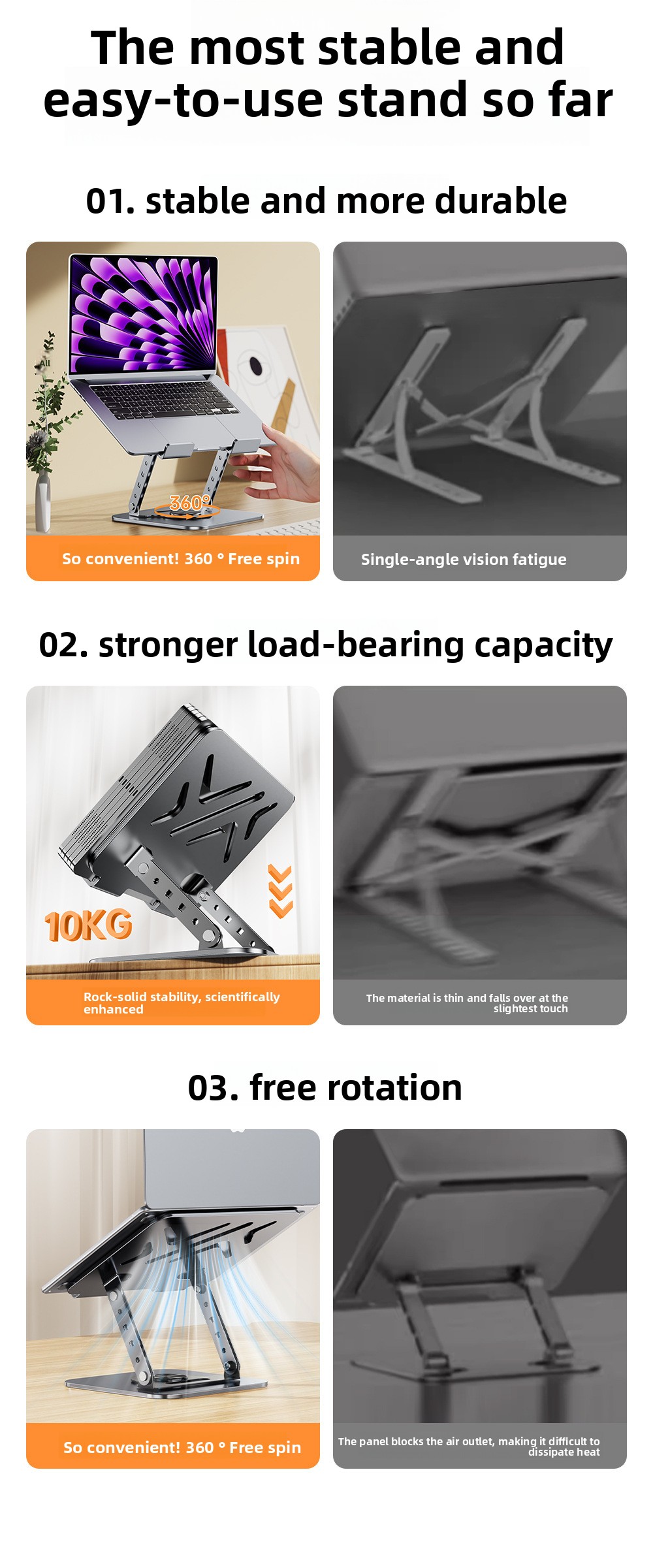 Color Options: Dark gray (laptop stand), Black/Silver (tablet stands), Gray (phone holder)